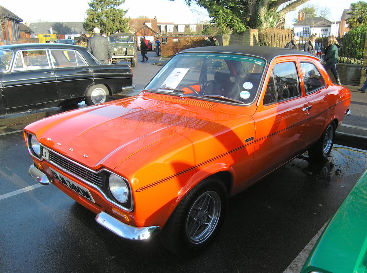 Nearby was another low-mileage unrestored Ford built the same year, this gleaming Sebring Red Mk1 Escort Mexico. It was bought new three months after the Capri, from Adlards Rallye Sport Centre, in Clapham Common, London, which had just been set up as an RS dealership.