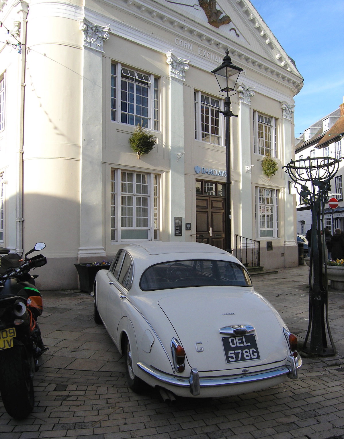 Late-model Jaguar Mk2 – a former bank manager’s car perhaps – looked spot-on outside Barclays in the market square