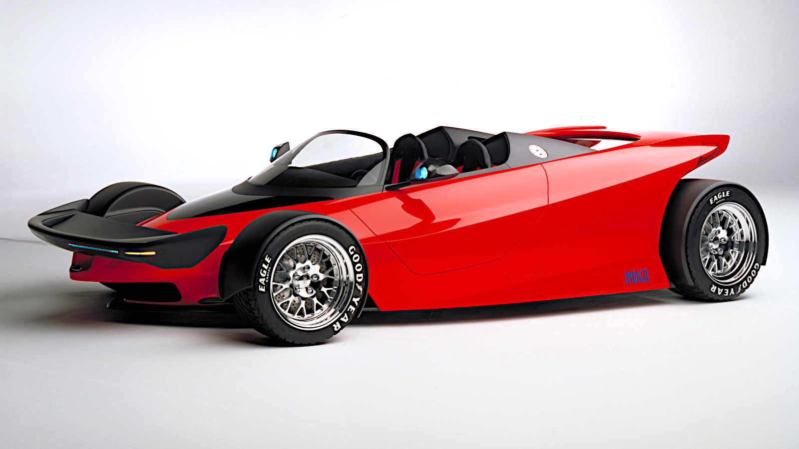 Der Indigo, eines der aufregendsten Konzeptfahrzeuge von Ford, war ein keilförmiger, offener Zweisitzer mit teilweise freiliegenden Rädern und einem markanten Frontflügel. Drei Exemplare wurden von der britischen Rennwagenschmiede Reynard gebaut.