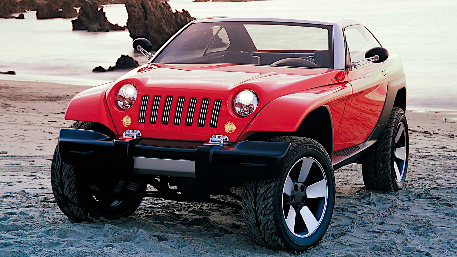 Der Name Jeepster tauchte erstmals 1948 auf. Das Konzept, das ein halbes Jahrhundert später in Detroit vorgestellt wurde, war ein ernstzunehmender Geländewagen, der in der Lage sein sollte, den gewaltigen 35 km langen Rubicon Trail in der Sierra Nevada zu bewältigen.