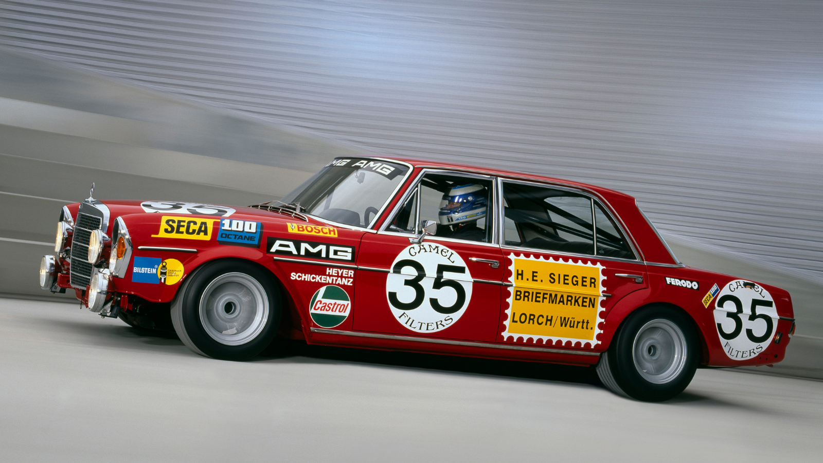 AMG engines first earned a reputation in racing, with the big milestone coming in 1971, when the AMG Mercedes 300 SEL 6.8 placed second overall and took first-in-class at the 1971 24 Hours of Spa – a huge upset for a luxury saloon dubbed the ‘Red Pig’ (pictured) racing against smaller, lighter machinery.