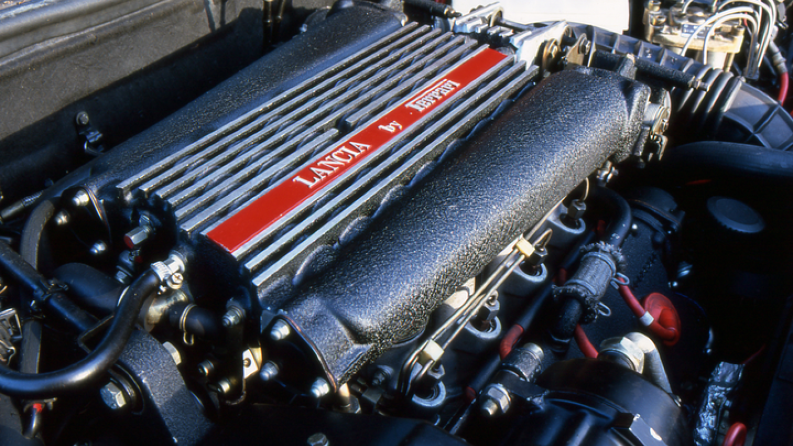 Based on that used in the 308 and Mondial Quattrovalvole, Lancia’s version sacrificed the flat-plane crank in favour of a cross-plane crank more suited to hauling a heavier saloon.