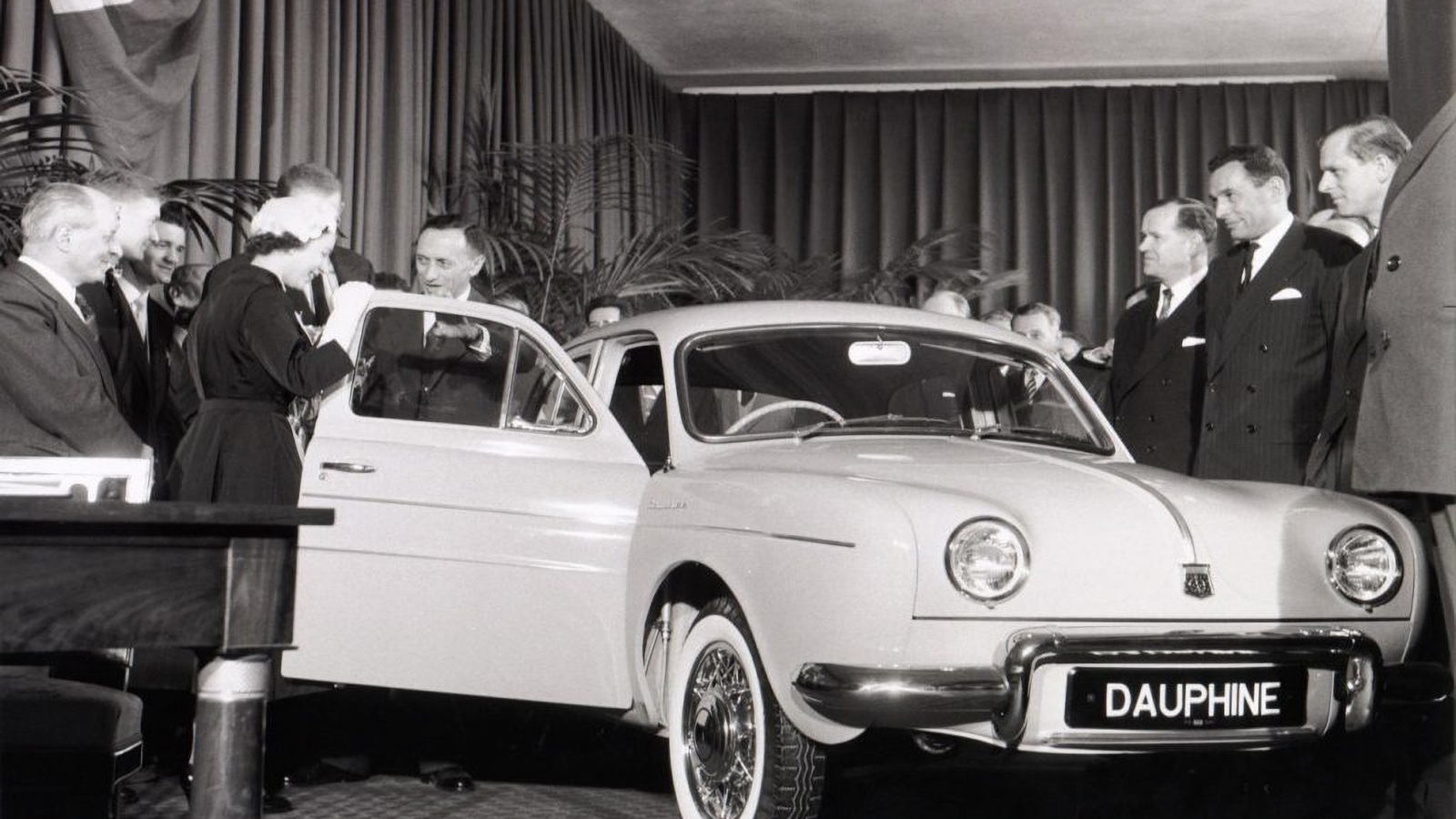 Perhaps controversially, the Queen was gifted a British-built Renault Dauphine, presented to her by company chairman, Pierre Dreyfus (pictured).