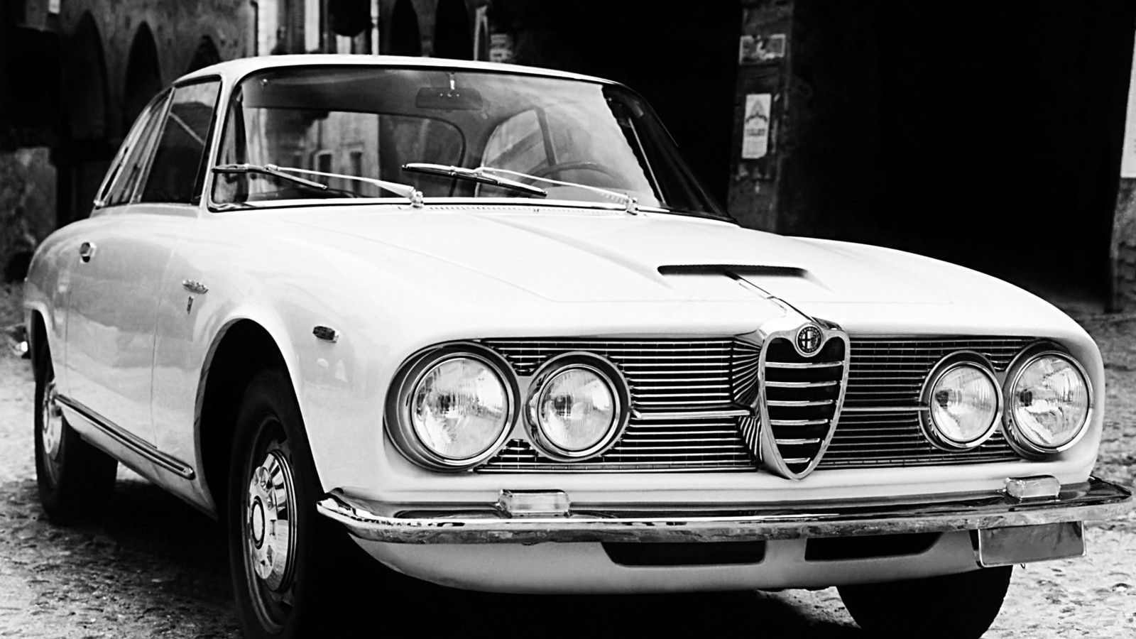 The upright radiator of earlier Alfas was replaced by a slimmer, more raked-back design that lent itself to better aerodynamics.