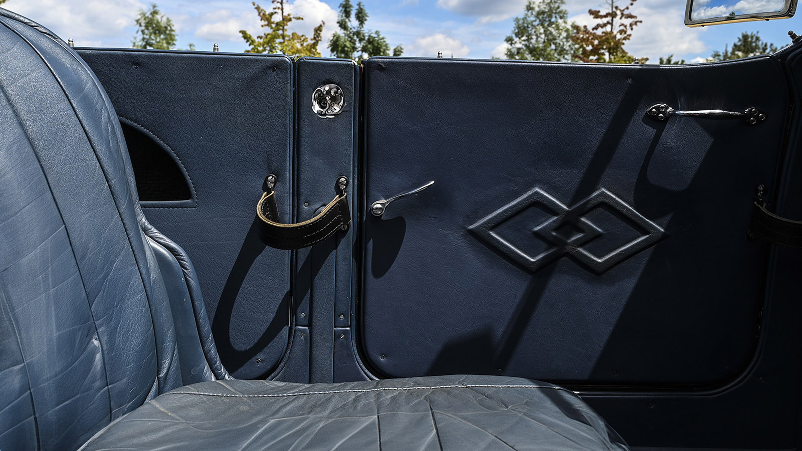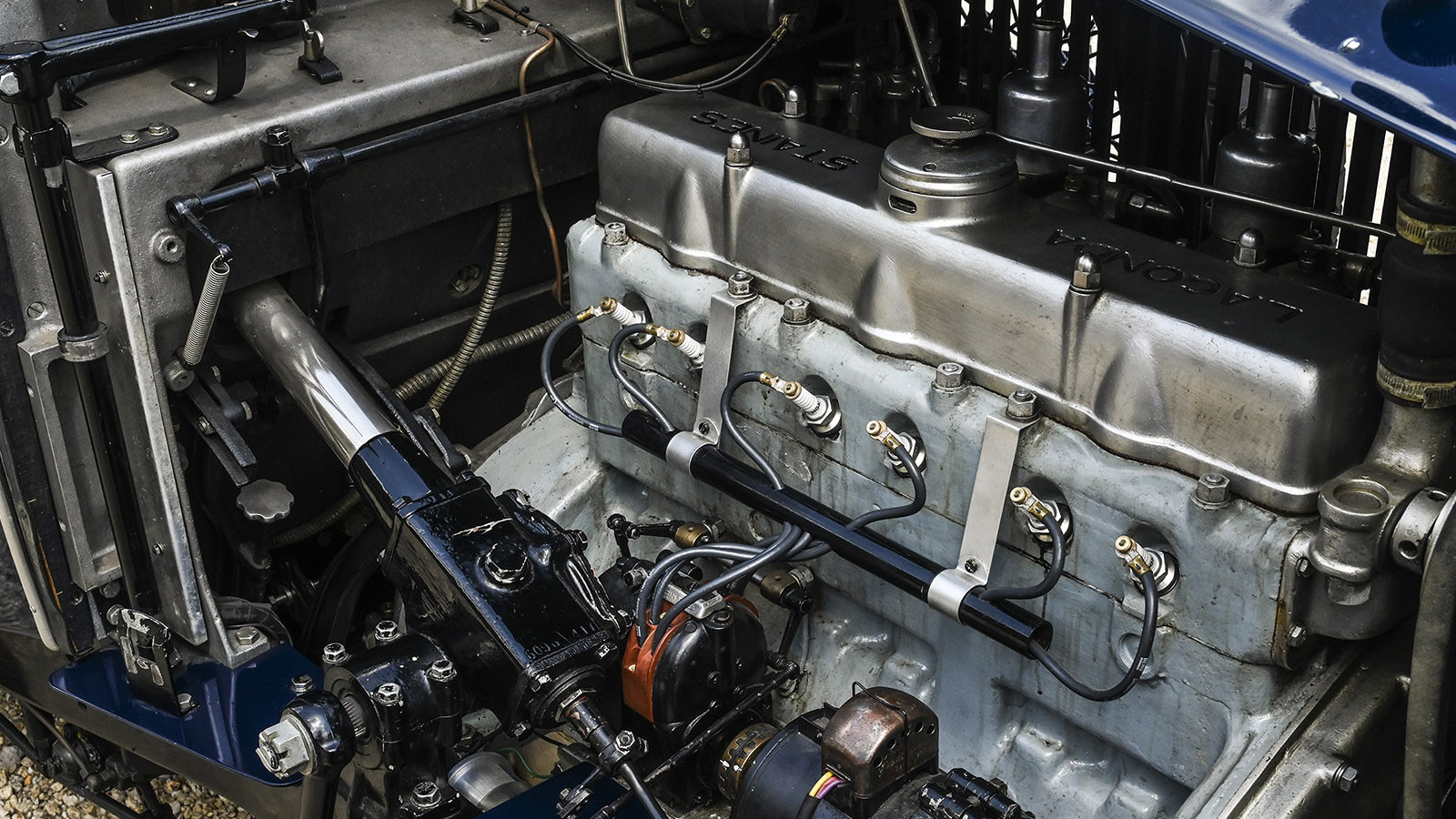 It might be some time since this Lagonda’s restoration, but its body still appears to be in fine order, its dark-blue paint retaining a deep shine.