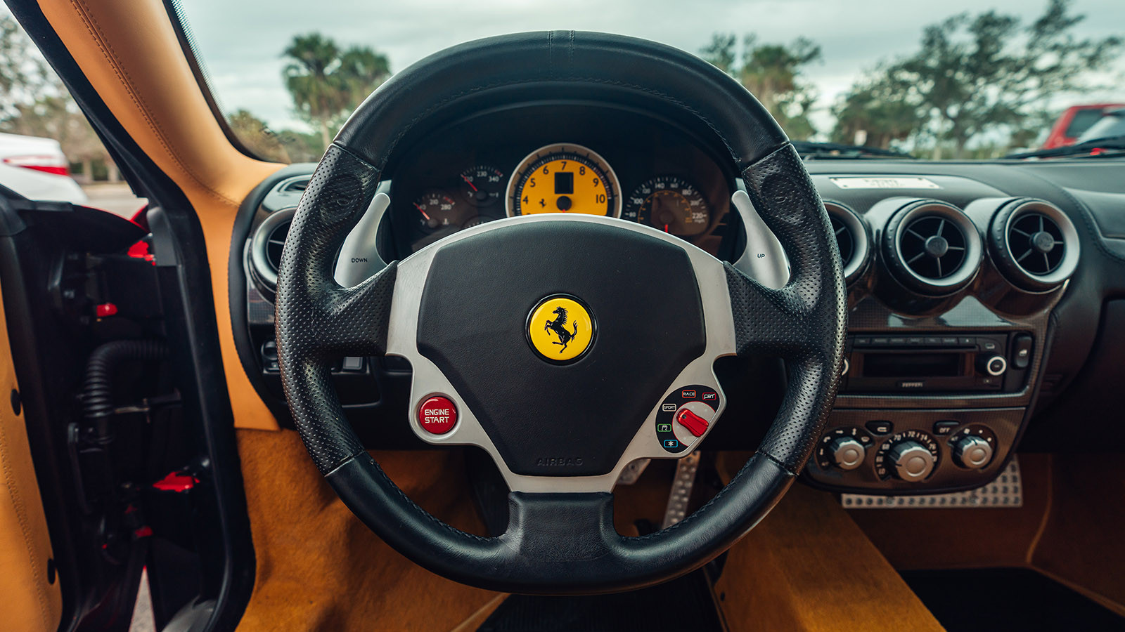 With this model, Ferrari increased cabin space and slightly flattened the top of the steering wheel, to improve the driver’s view of the road.