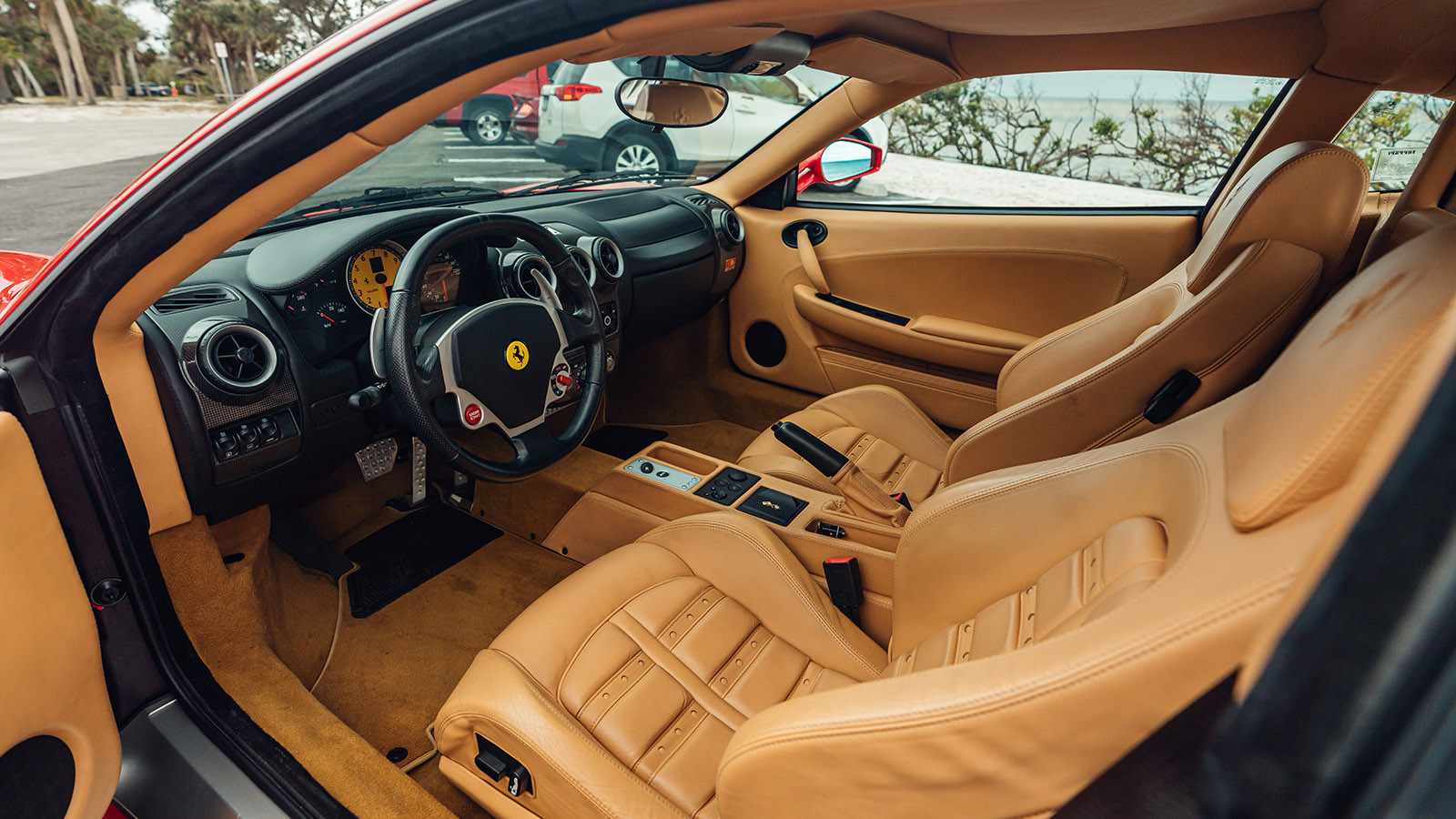 This example of the Ferrari 360’s successor is finished in Rosso Corsa and its cabin is trimmed in tan leather.
