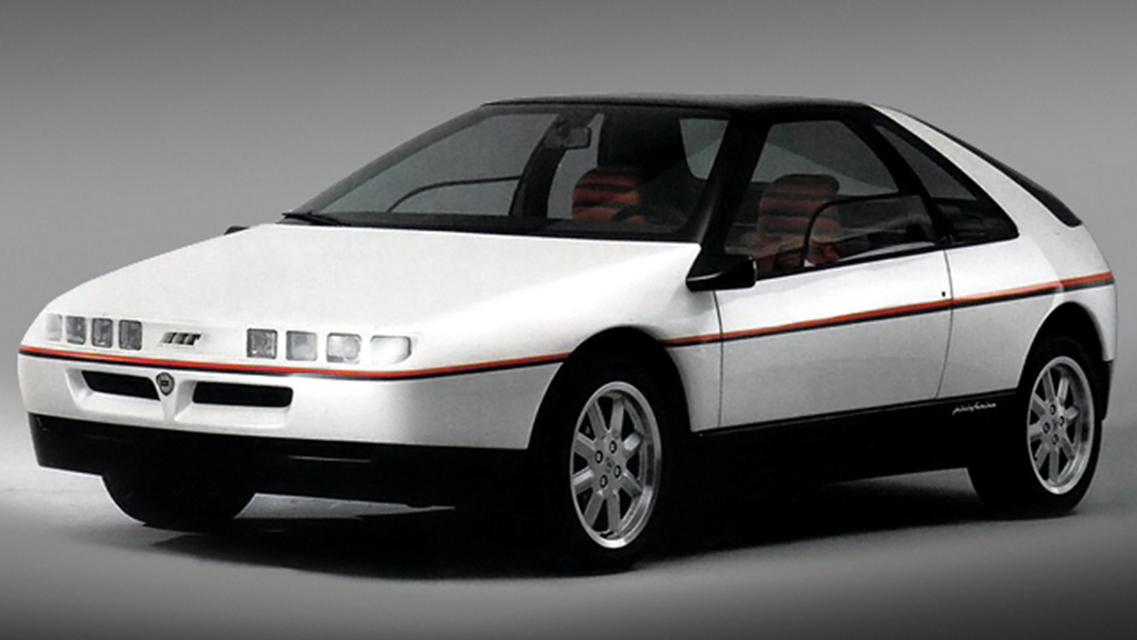 Revealed at the Turin show, it featured digital instruments in the middle of the dashboard to keep the driver’s eyes near the road, retractable headlamps, plus an electrically operated porthole in the side of the car.