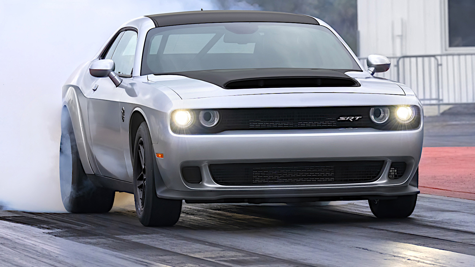 La versión definitiva fue el SRT Demon 170 (en la imagen), que contaba con un motor V8 de 6,2 litros y 1011 CV y que obtuvo una considerable publicidad por el hecho de que se le prohibió participar en carreras de aceleración sin una jaula antivuelco o un paracaídas adicionales, ya que podía recorrer un cuarto de milla desde parado en menos de 9 segundos.
