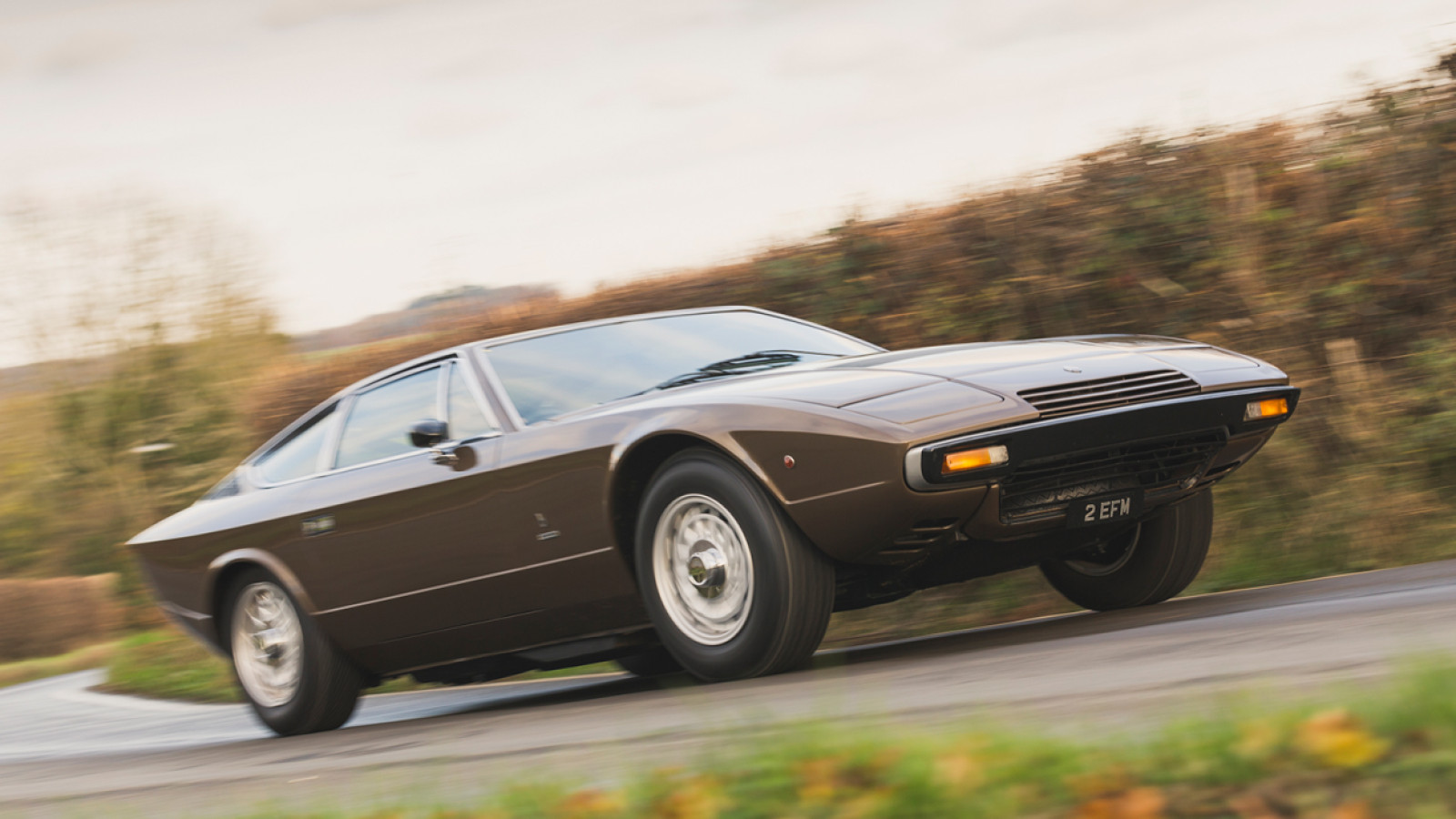 El Khamsin, un 2+2 con motor delantero, fue el último de los modelos GT grandes tradicionales de Maserati hasta el 3200GT de finales de los 90, con Marcello Gandini como autor de las elegantes líneas en forma de cuña del modelo.