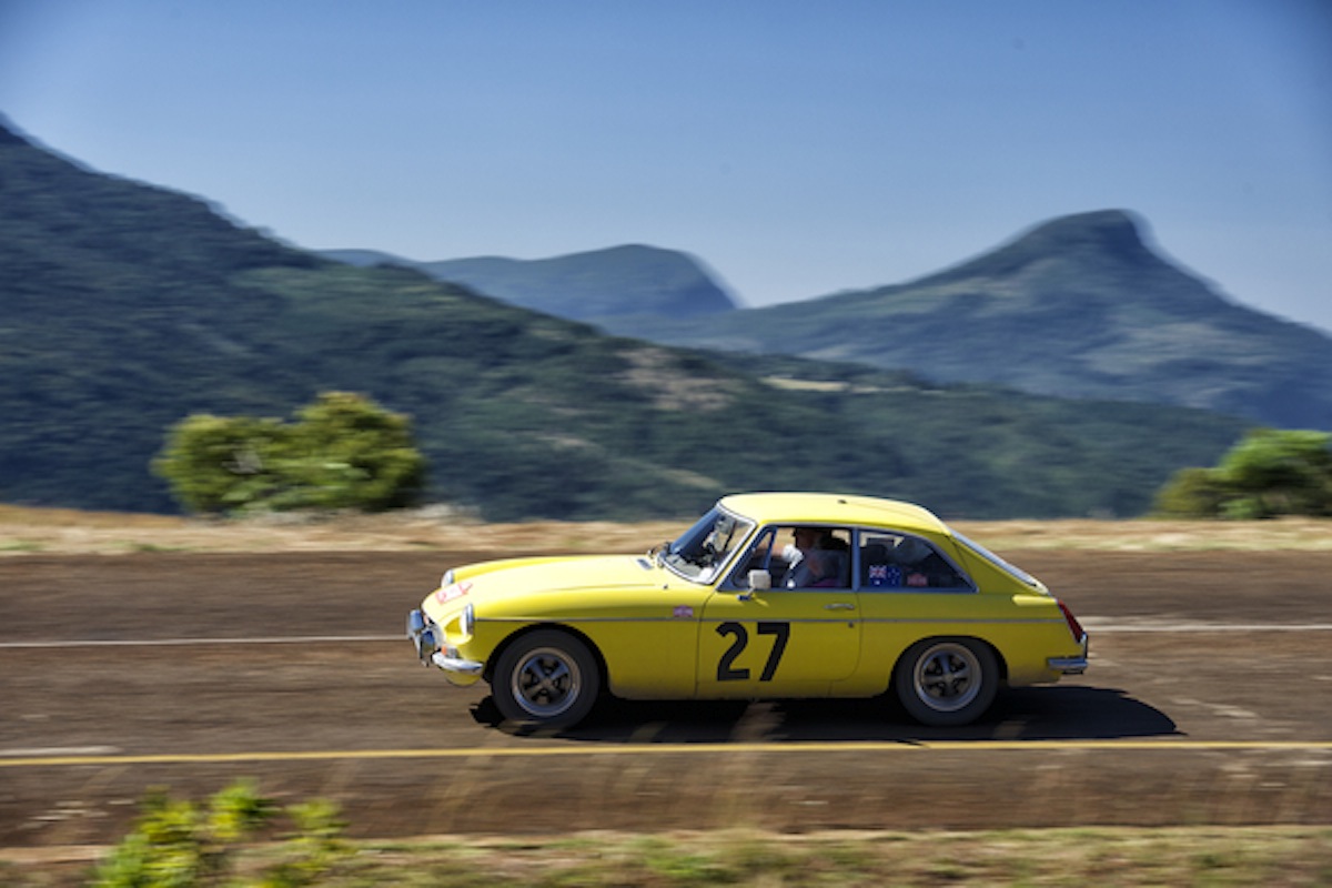 Aussies John and Marian Crighton may have finished halfway down the field in their 1973 MGB, but they did receive a special award for being one of only two cars that the rally's mechanics never had touch. Photo: Gerard Brown