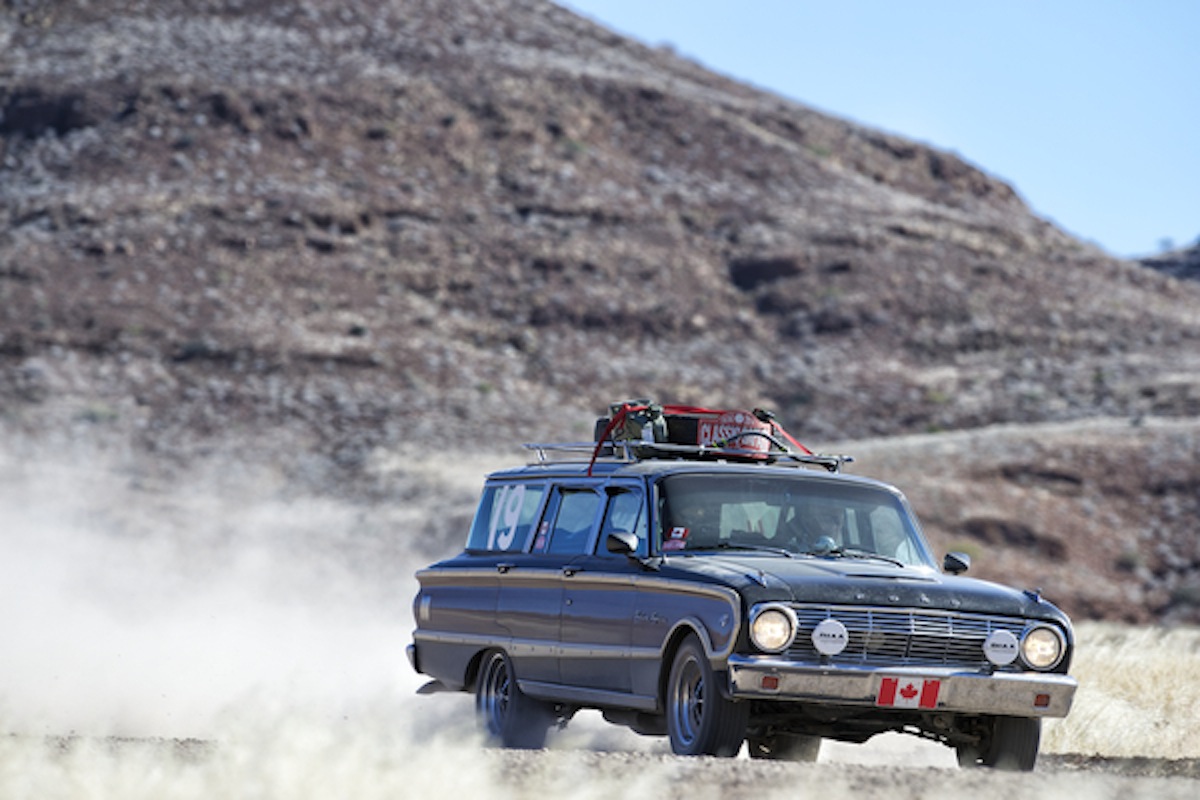 Bizarrely the 1963 Ford Falcon Squire pedalled by Canadian crew of Larry and Carolyn Hursh was probably both the oddest yet most practical entry for the event. Photo: Gerard Brown