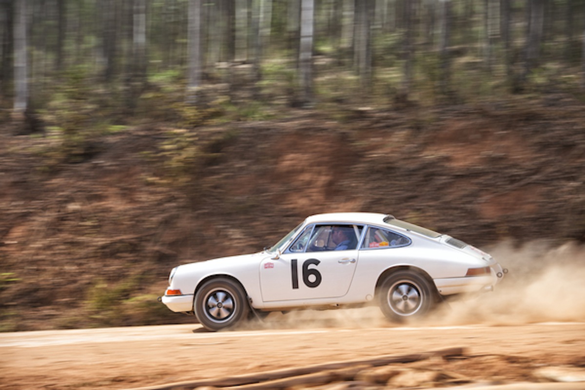 It's unusual nowadays for any rally to have only one Porsche 911 in it, but this one ended in non-classification for Peter and Zoe Lovett's 1965 car. Photo: Gerard Brown