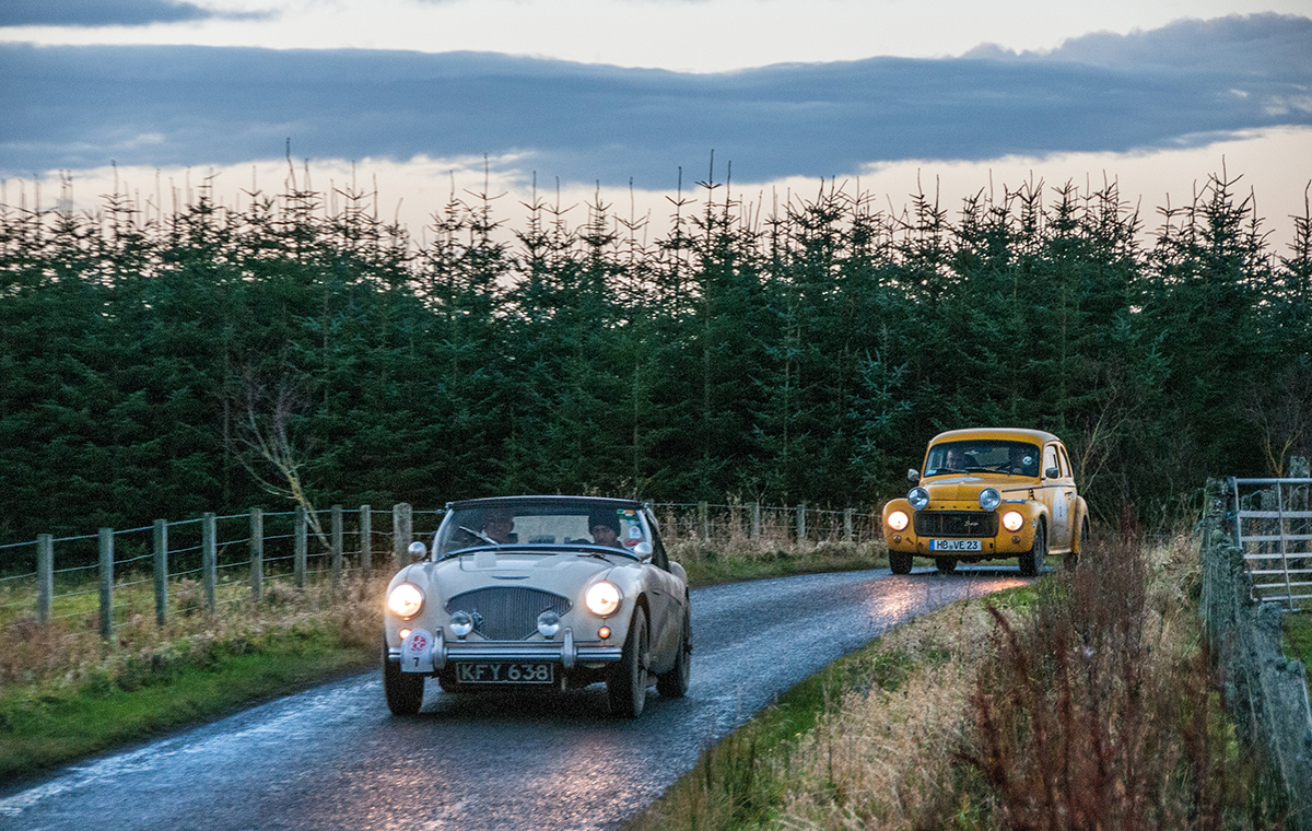 The 66-strong entry was led by Bob and Sue McLean in their Rover P4, while a number of crews ran into problems due to high winds and flooding, including Tim Lawrence and Alan Pettit, who had to push their MGB out of a waterlogged section before an overnight stop at Slaley Hall.