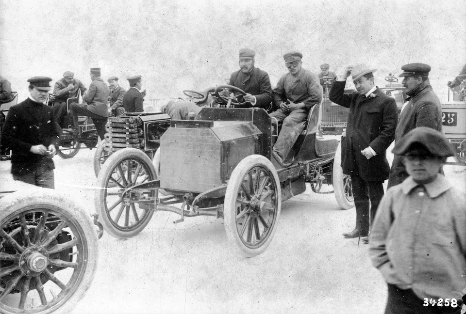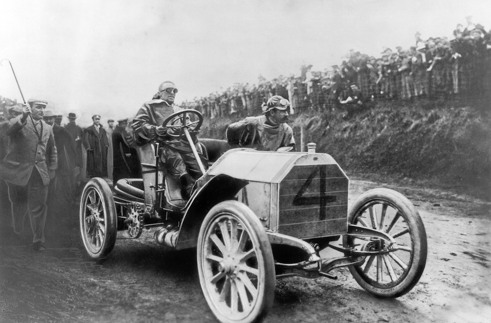 Camille Jenatzy, winner of the Gordon Bennett race in Ireland on 2 July 1903, in Clarence Gray Dinsmore’s Mercedes-Simplex 60 HP. The American millionaire made his vehicle available to the Daimler-Motoren-Gesellschaft for the race.