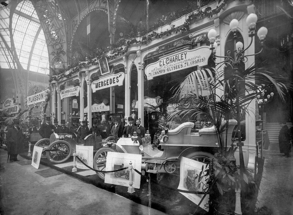 Mercedes stand at the Paris Motor Show in December 1902, jointly presented by C. L. Charley and Daimler-Motoren-Gesellschaft. The motor show was described in the press at the time as the “Mercédès Show”, because most manufacturers had adopted key features of the Mercedes 35 HP dating from 1901 for their models.