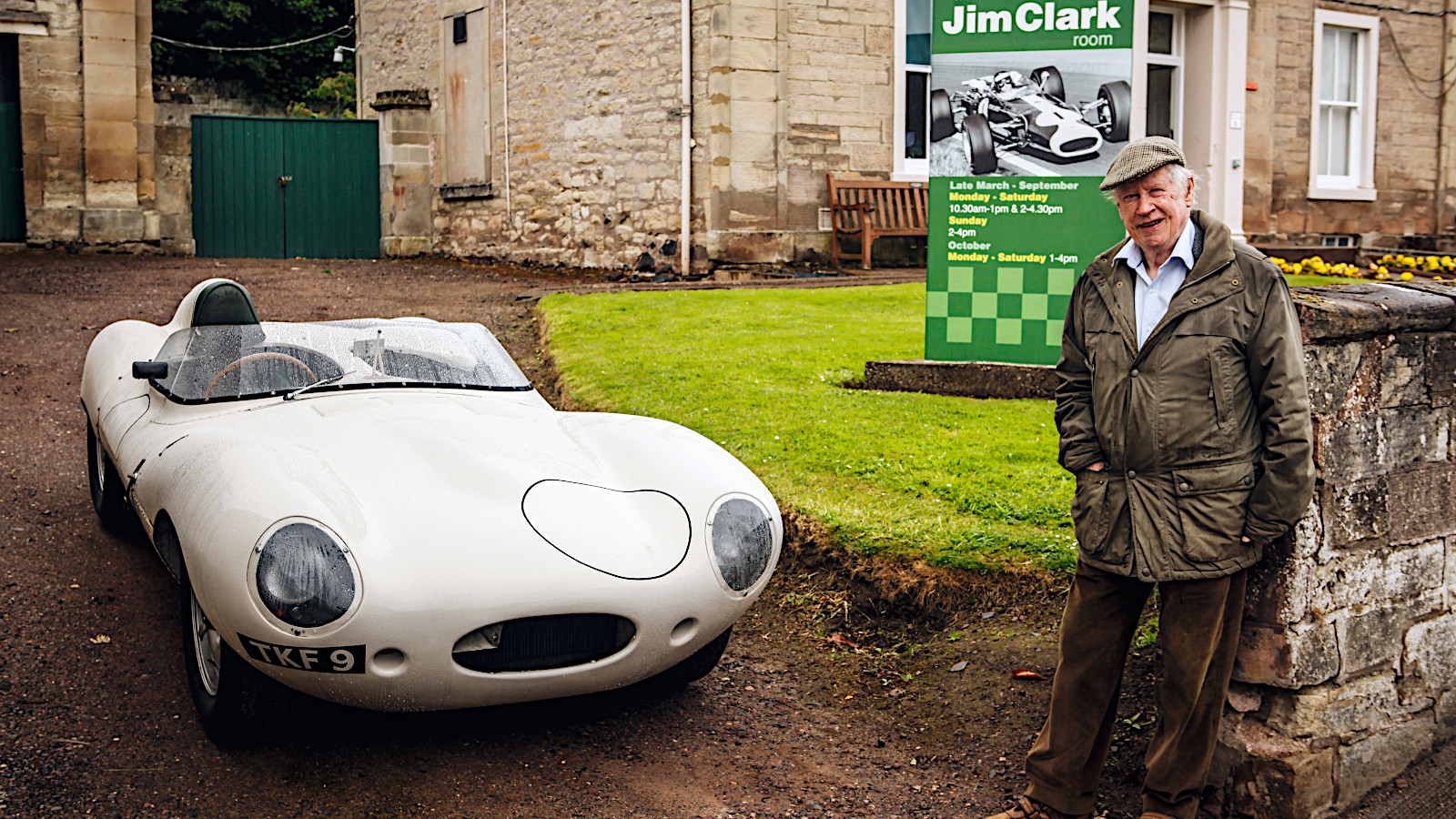 In 1958, Border Reivers bought a Jaguar D-type (pictured with Ian Scott-Watson in 2018) which was intended to be shared by the team members, though as things turned out Clark did nearly all the driving.