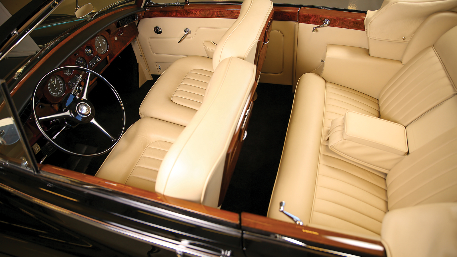 There’s ample room for four in this Rolls’ opulent burl-wood-trimmed cabin and it’s been converted to left-hand drive.