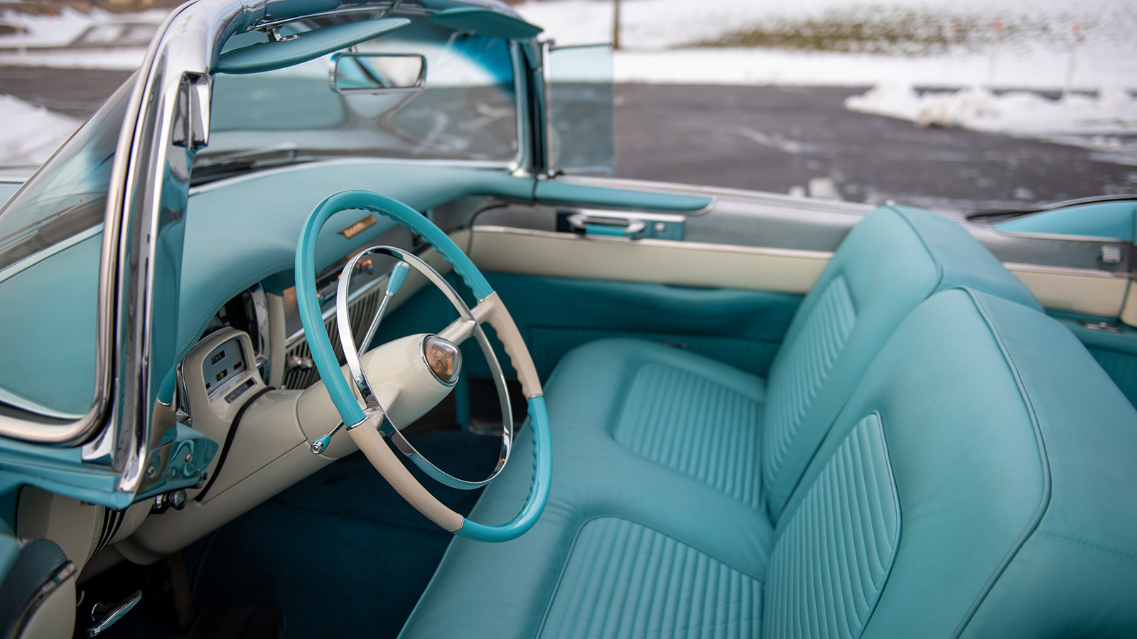 Its immaculate, two-tone cabin just makes you smile. And then you remember that under the bonnet is a 331cu in V8, and that you have power-assisted steering and windows to ease life behind the wheel.