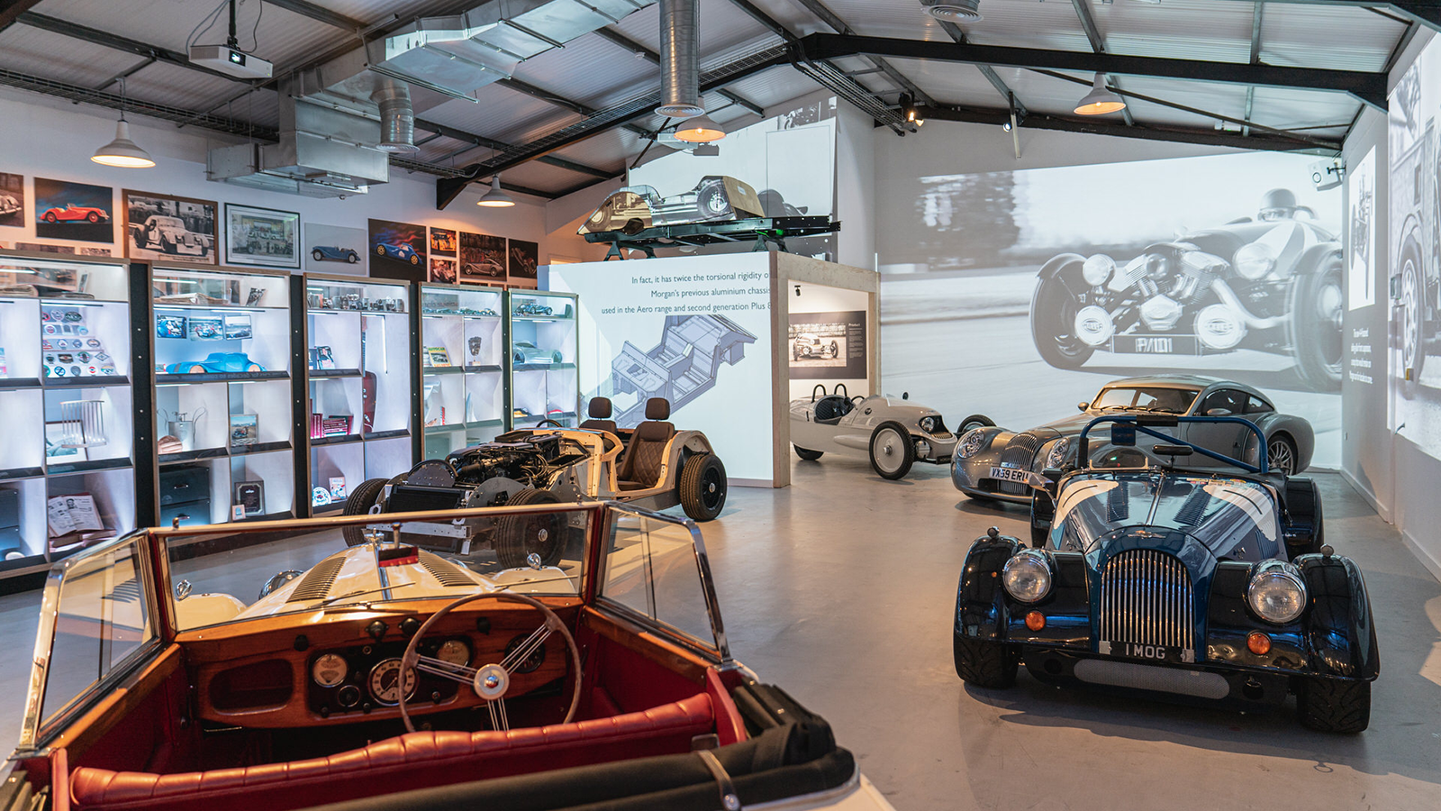 And now there’s also the brand-new Archive Room to delve into. It’s an audio-visual experience showcasing artefacts from across Morgan’s 112-year history, including original blueprints, press cuttings, trophies and artwork, as well as a seven-car display.