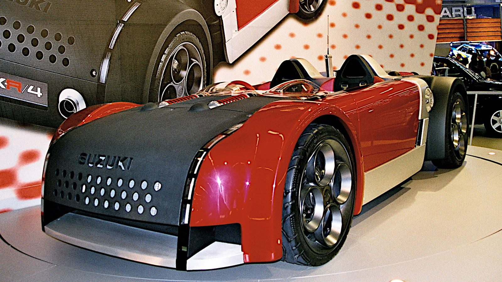 This very racy-looking, open, two-seat roadster, featuring partly exposed springs and shock absorbers, was powered by the 1.3-litre engine fitted to the GSX1300R Hayabusa motorbike.