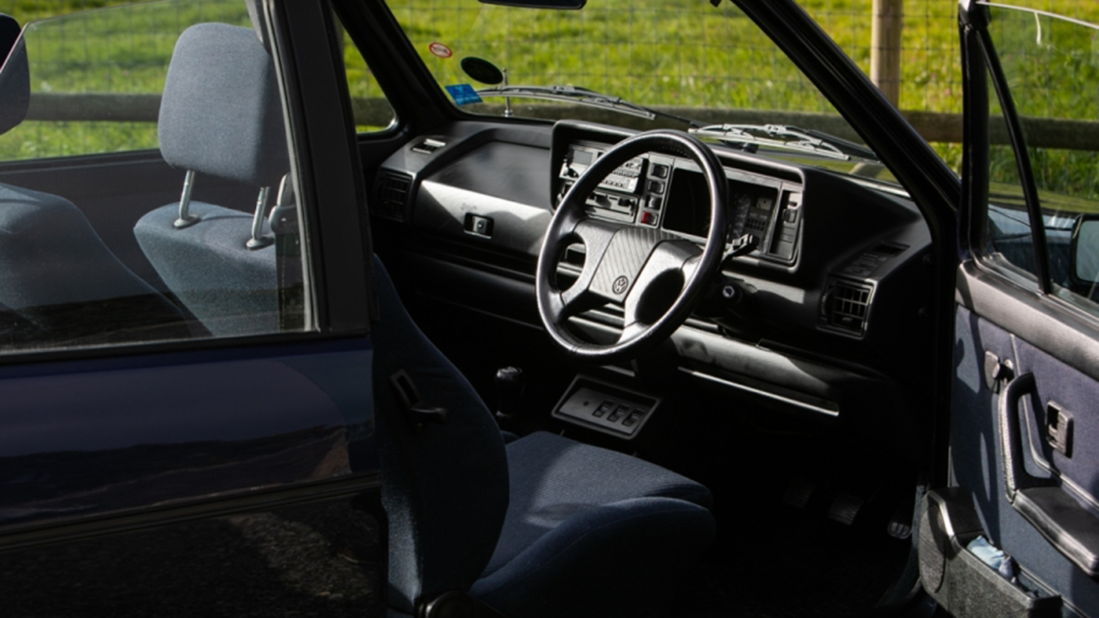 The Golf is finished in Inca Blue, wears its original Le Castellet forged alloys and has a powered mohair roof, while inside are heated blue-cloth Recaro seats.