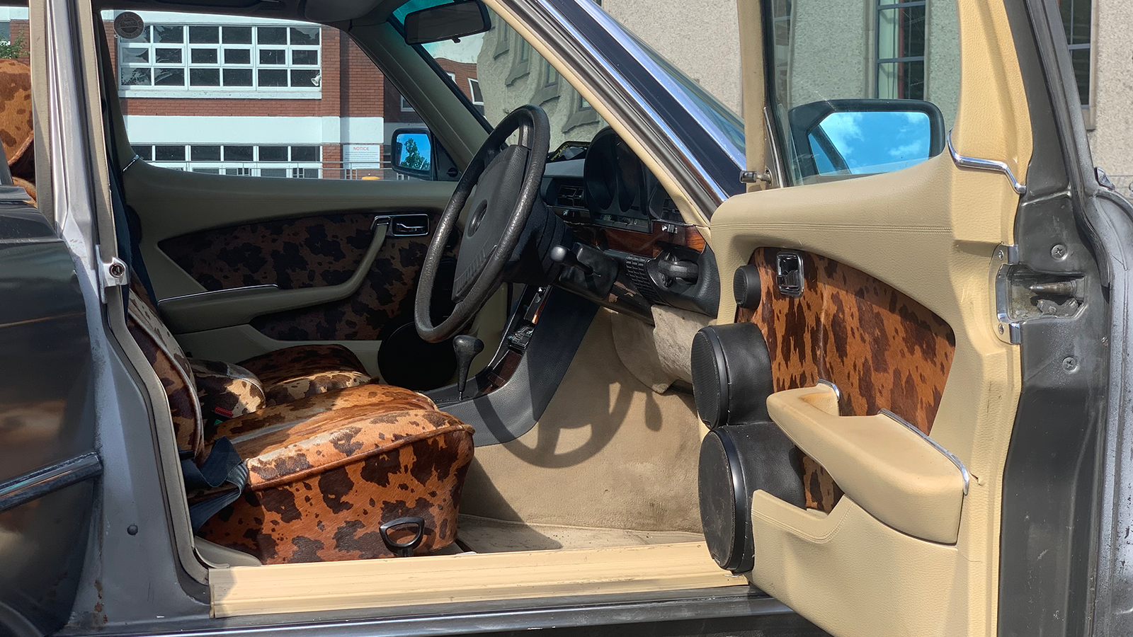 We think this 450SEL’s grey paint suits it very well – and given the outlandish interior, such a smart and sober exterior finish is quite a contrast.