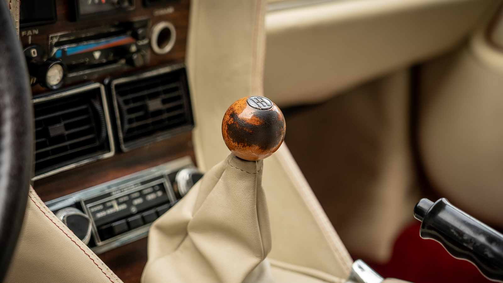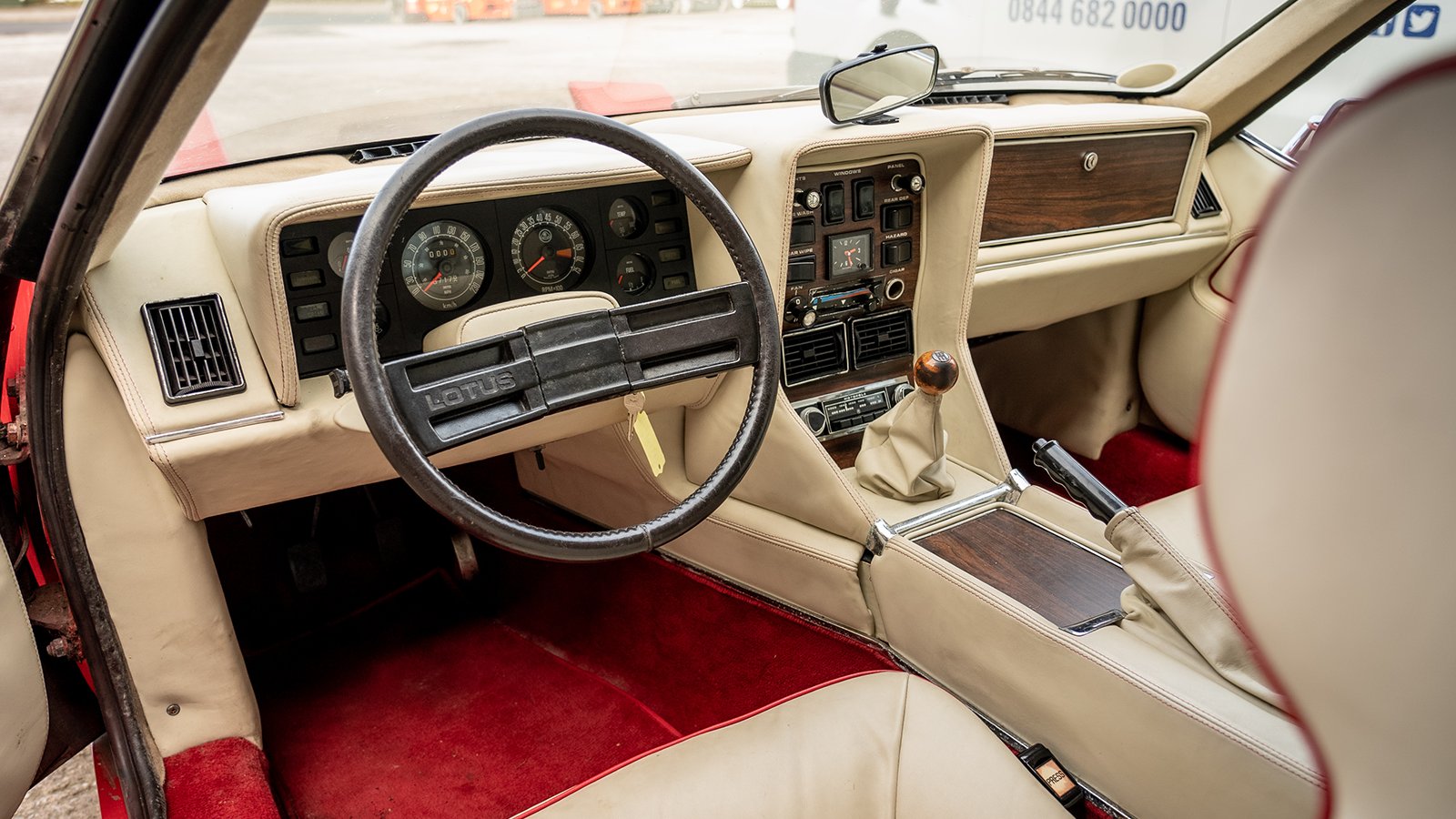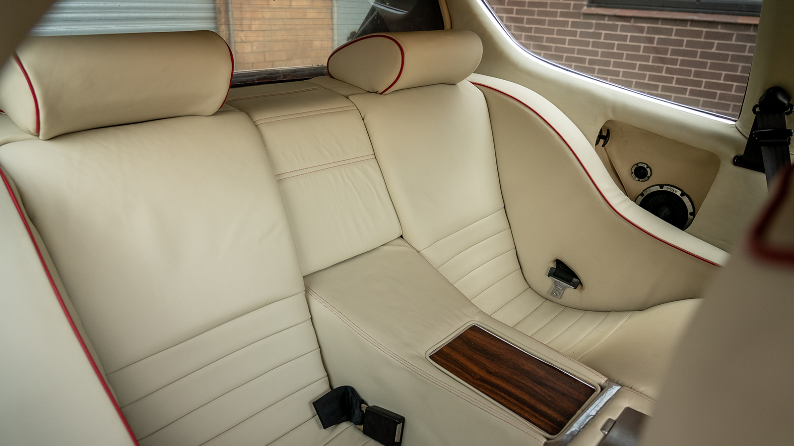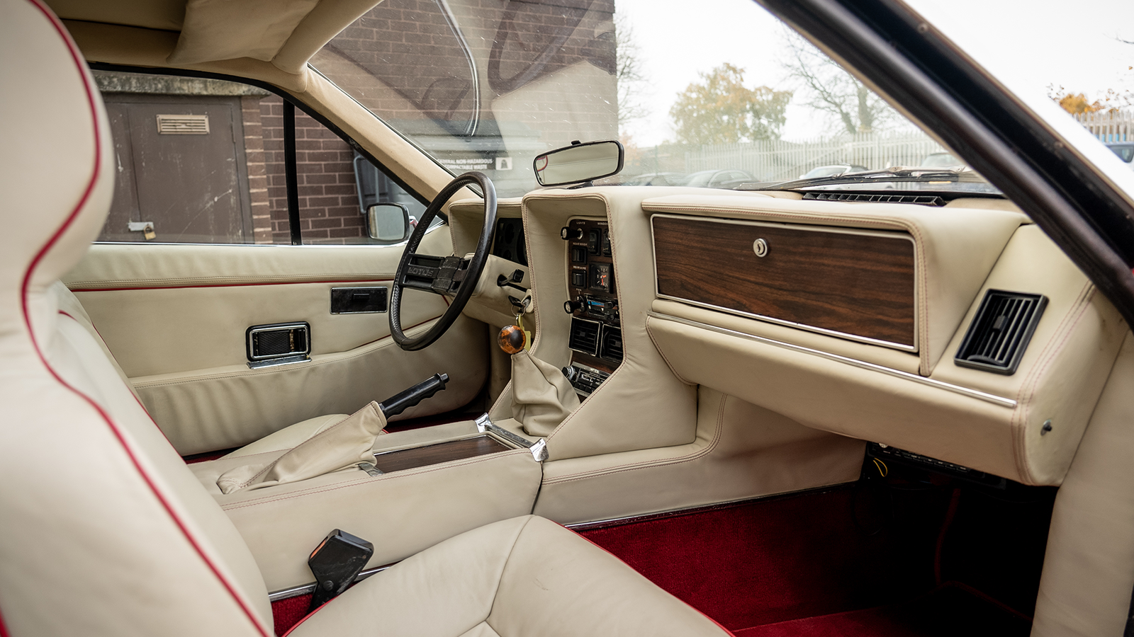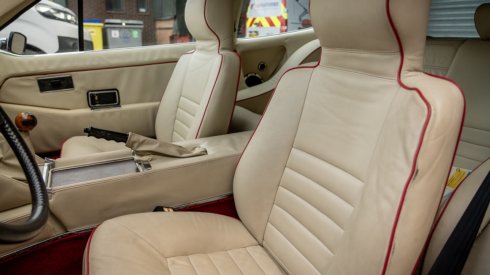 The cream-leather upholstery with red piping is very of its time, even if in this example it requires some reviving.