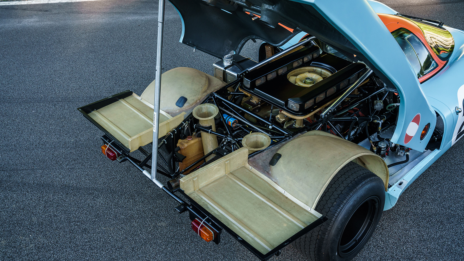 In creating this 917 Spyder, Porsche put a 5.0-litre engine with this chassis, and the engine was also numbered 917-031 – and this engine is still with it today.