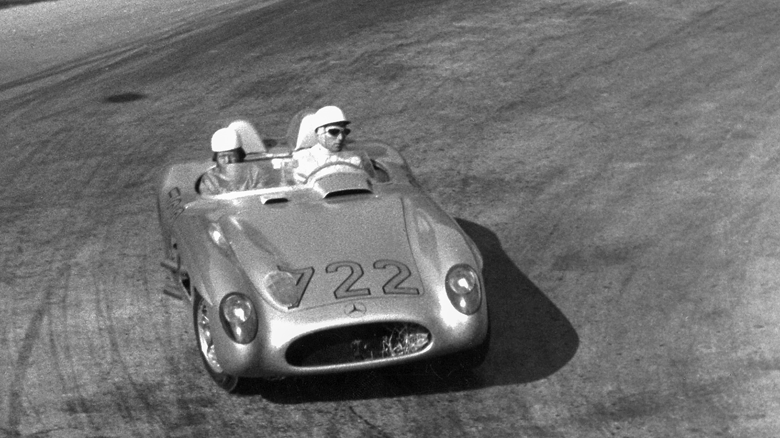 This is the Mercedes-Benz 300SLR in which Moss, with ace co-driver Denis Jenkinson, won the 1955 Mille Miglia.