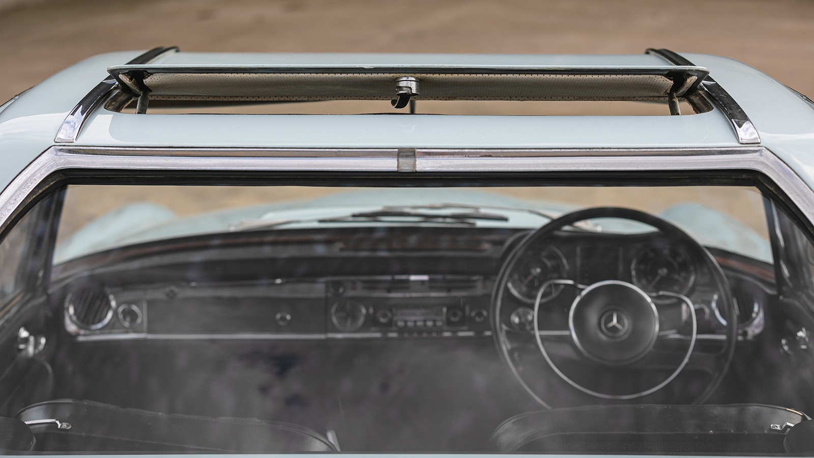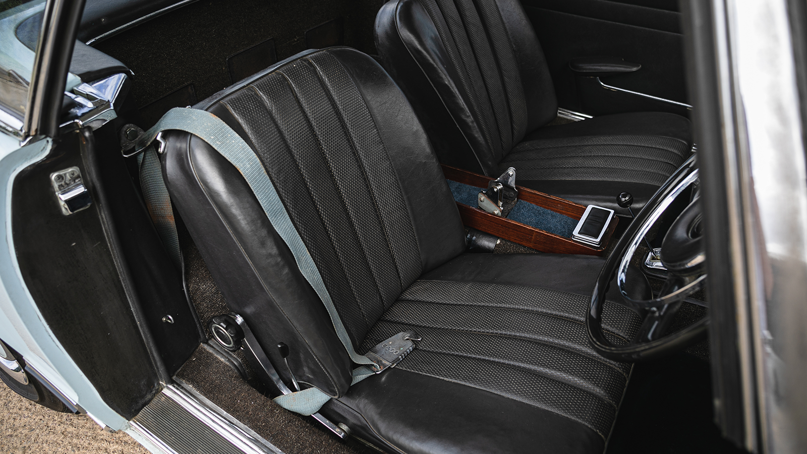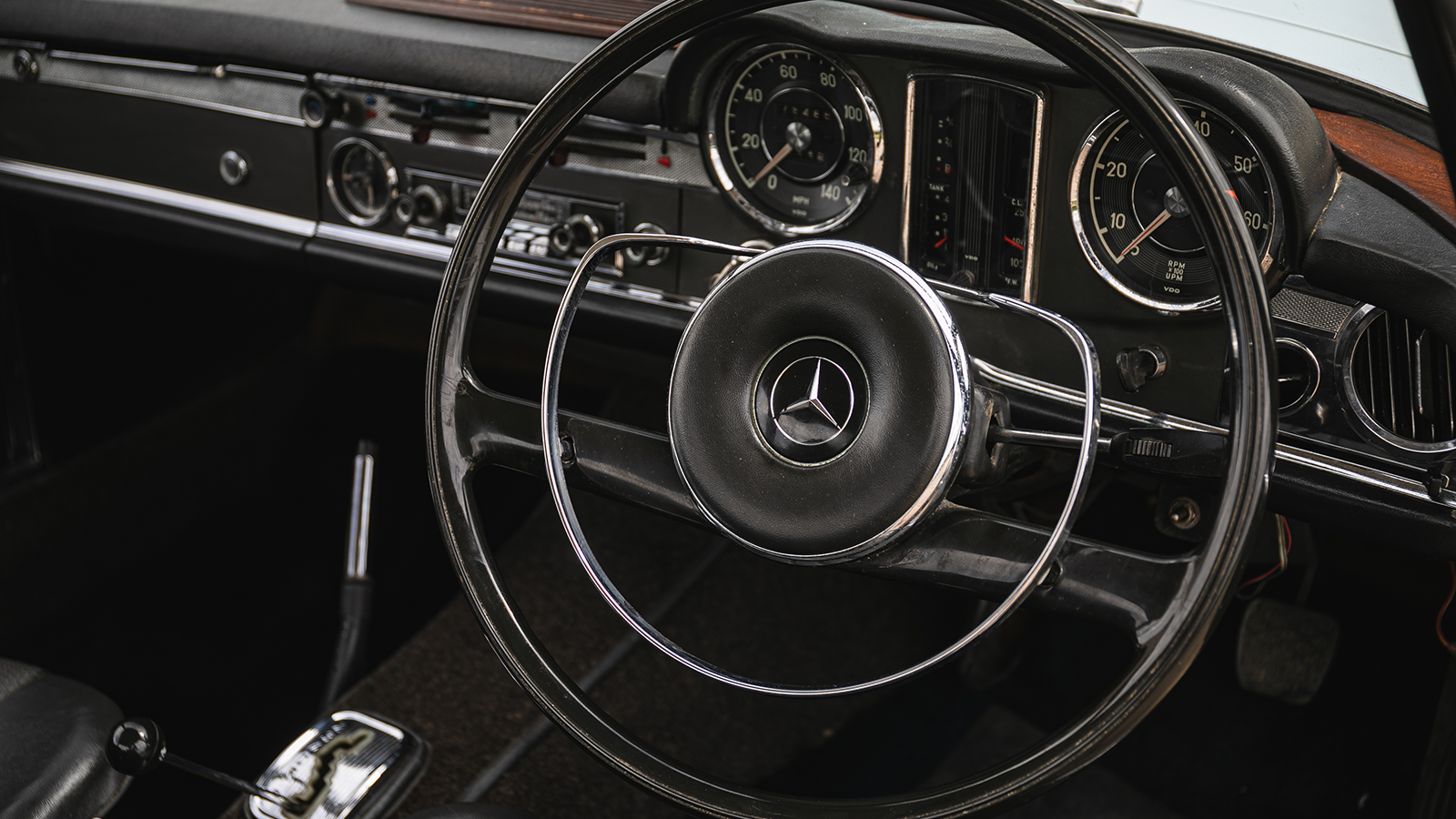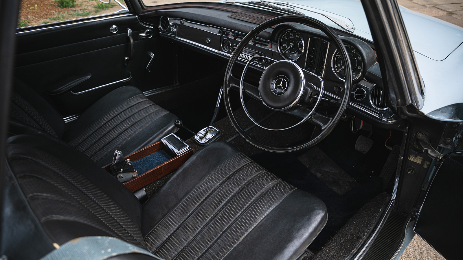 In this case, under the bonnet was a specially fitted M129 engine from a 250SE, because the right-hand-drive 250SL didn’t arrive until 1967.