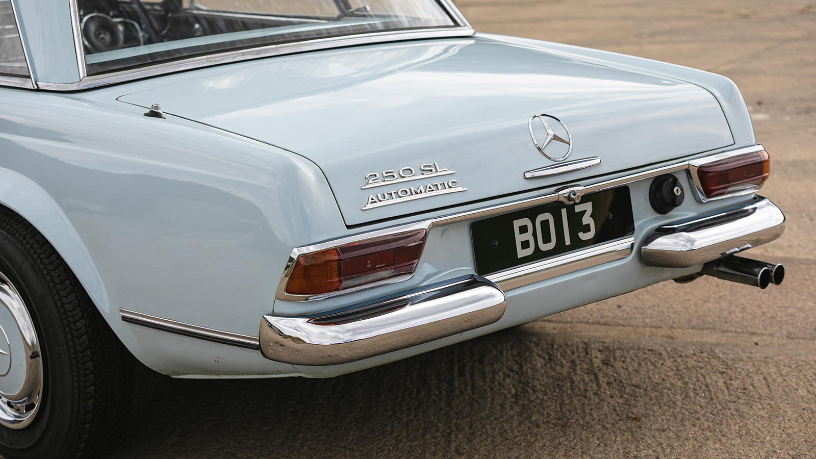 From this rear-view photo, you can see it clearly says ‘250SL’ on the back of the car.