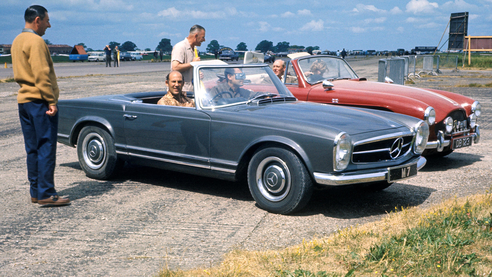 Roof on or off, it seems Moss enjoyed this Mercedes, which during his custodianship wore his ‘M7’ numberplate – this image shows him in it at Silverstone, with friend and privateer race-team owner Rob Walker.