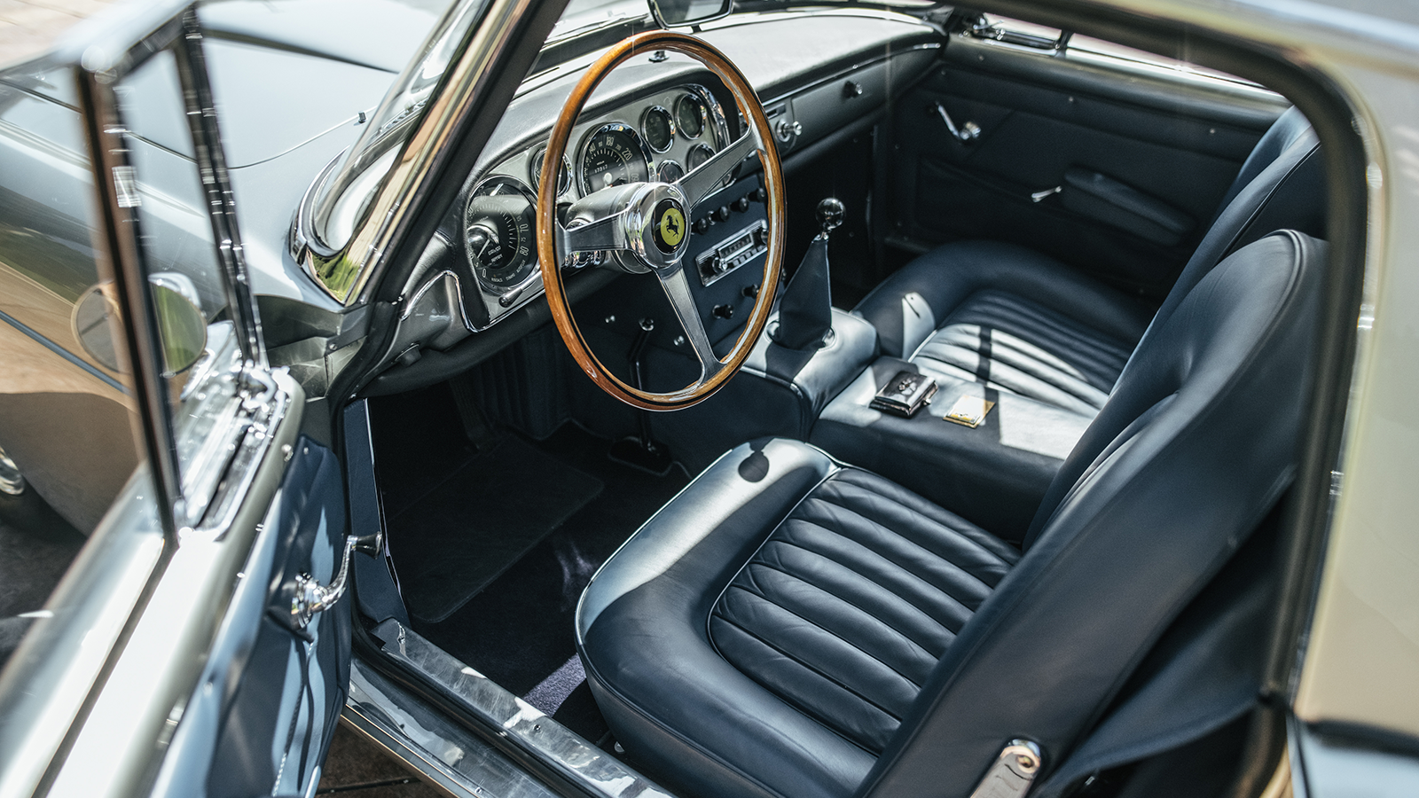 And that colour? The Ferrari started life, when it was completed on Valentine’s Day in 1968, finished in Celeste, a rich pale blue, with a Nero interior.