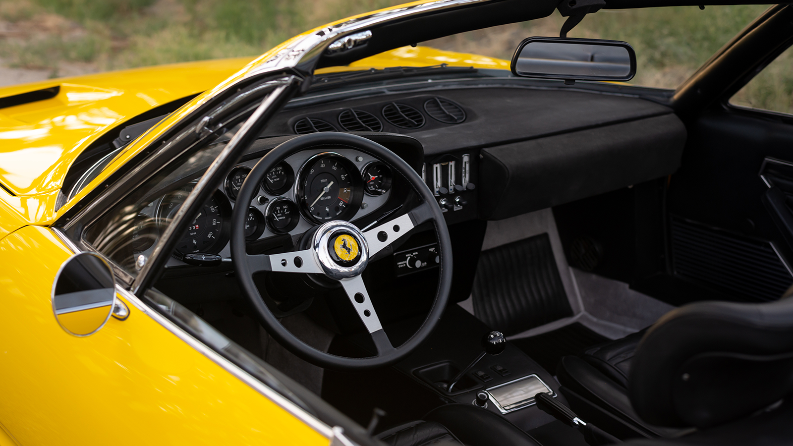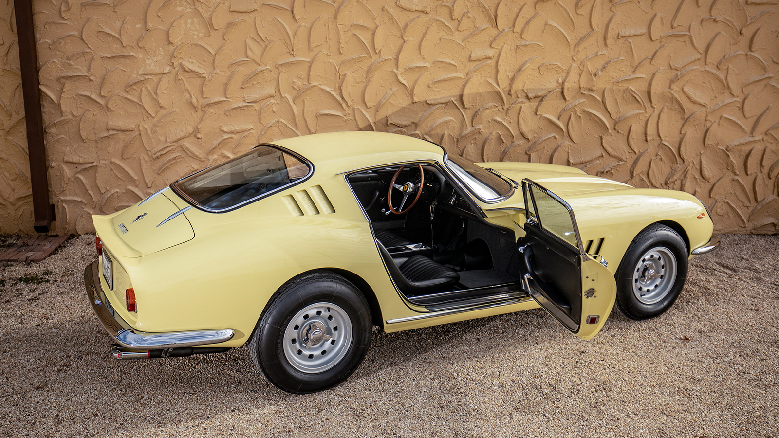 Pray bought it in 1973 and at some point had the car repainted Rosso Corsa, then when it was restored by a marque specialist in Texas in 1996 it received this pale-yellow hue, called Giallo Solare.