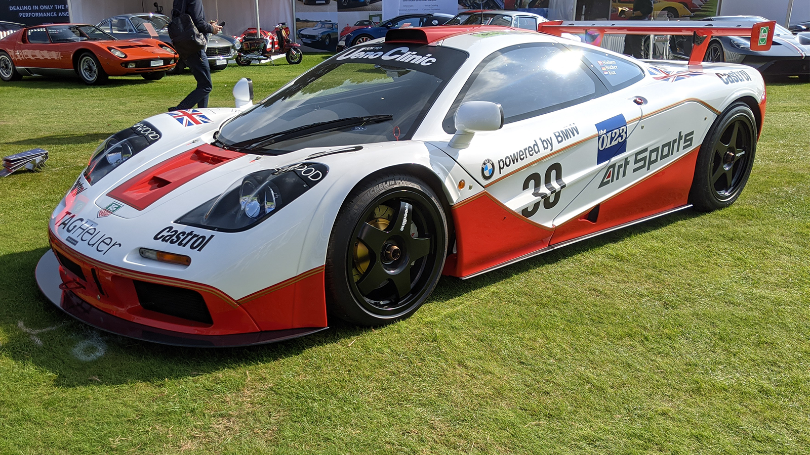 Ending the run of fabled GT and prototype sports cars is this Kenwood-branded Porsche 962 by Kremer. The name of Derek Bell beneath the drivers’ door window signifies a Le Mans outing of a different sort: the 2012 Classic.