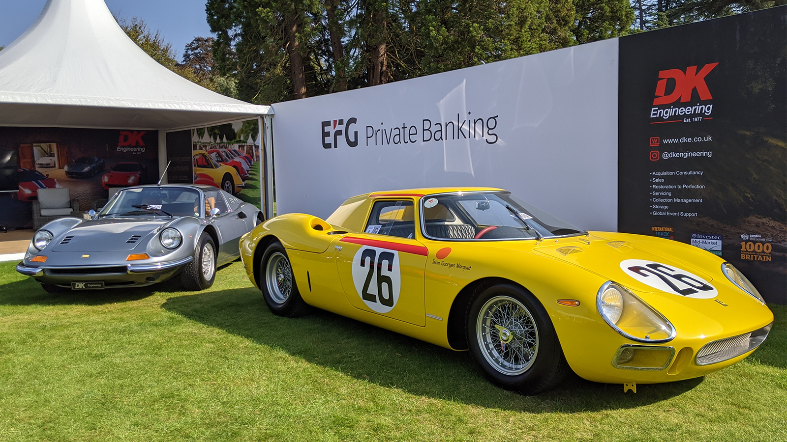 On the Furlonger stand is the very car that was displayed at Earls Court in 1967, and the first right-hand-drive example. Its first owner was a member of the Thomas Cook family, and it was restored just two years ago.