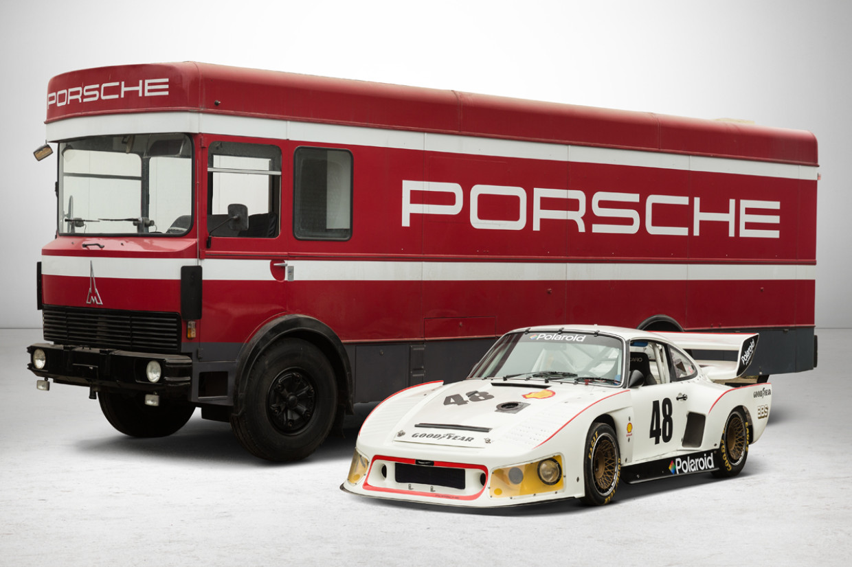 If you're stuck for ideas of what you might like to transport, you could do worse than a 1977 Porsche 935, which began life as a 930 Turbo in the ownership of American racer Norm Goldrich. Since then, the car has had its bodyshell reinforced with a tube frame and cage, while the engine was enlarged from 3.0-litres to 3.2-litres, plus Carillo rods, a new crankshaft and a larger Garett turbocharger. The end result? 610bhp. The pair is expected to fetch between €250-300,000.