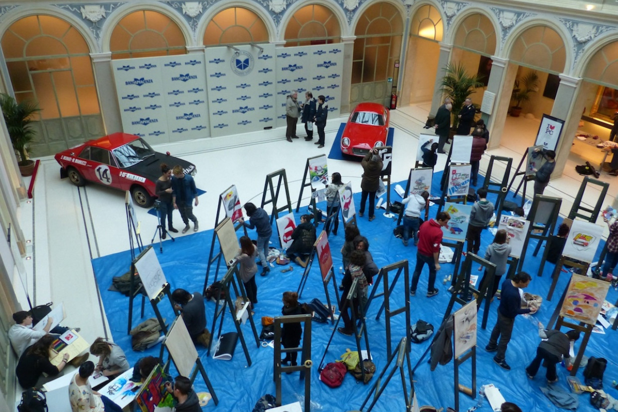 The 17 to 19-year olds from Liceo Artistico Statale “Bruno Cassinari” in Piacenza, Italy, celebrated Lancia in their paintings and, although they could research the subject in advance, had just four hours to complete their works.