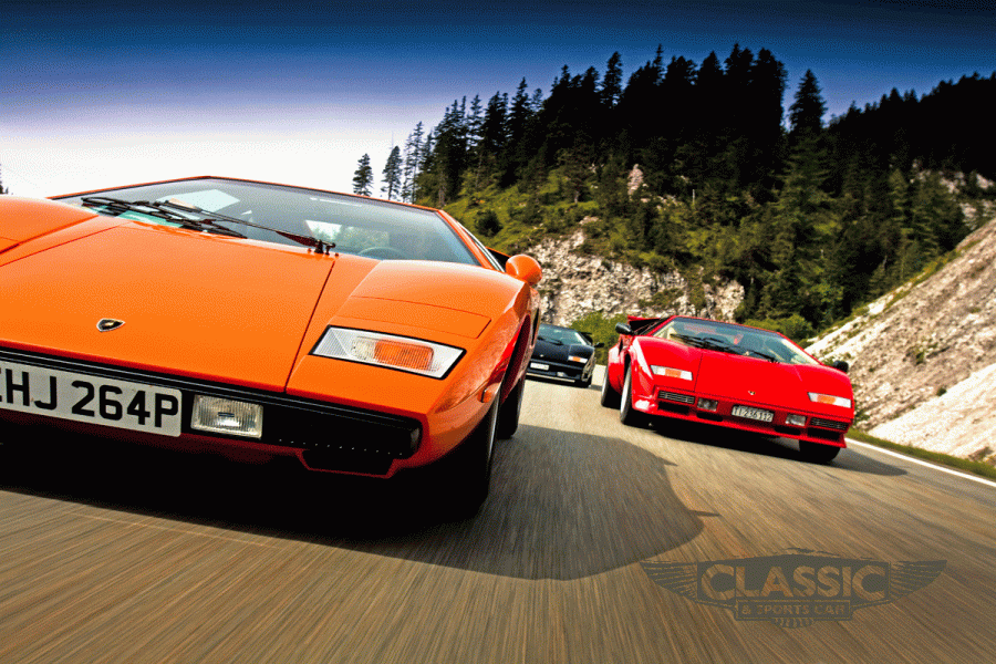 A trio of Lamborghini Countachs storms the Alps