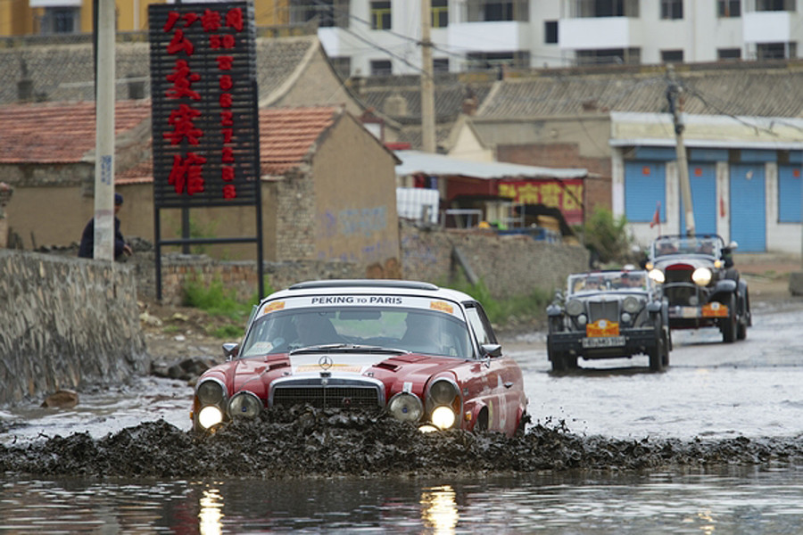 Peking to Paris Rally competitors face huge floods
