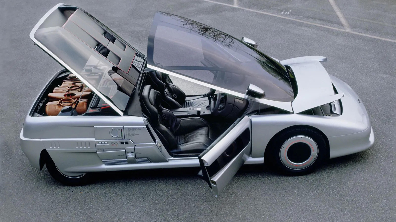 Veremos a reinvenção do para-brisas da Lancia mais tarde, mas o Italdesign Aspid vai mais longe e inclui janelas laterais e um teto de abrir na equação. Embora seja um dos poucos carros da nossa lista com portas convencionais, estas são totalmente inúteis sem o teto de vidro curvo. A Italdesign diz: "O ponto de partida do projeto Aspid foi a possibilidade de moldar janelas de dupla curvatura (feitas de vidro cuja secção transversal não era cilíndrica, mas esférica) de forma industrial. Com a nova técnica, os designers puderam incorporar as superfícies envidraçadas nas linhas gerais e fluidas da forma do carro sem ter de introduzir descontinuidades". Existe, no entanto, uma junção central onde as duas cabinas se encontram.
